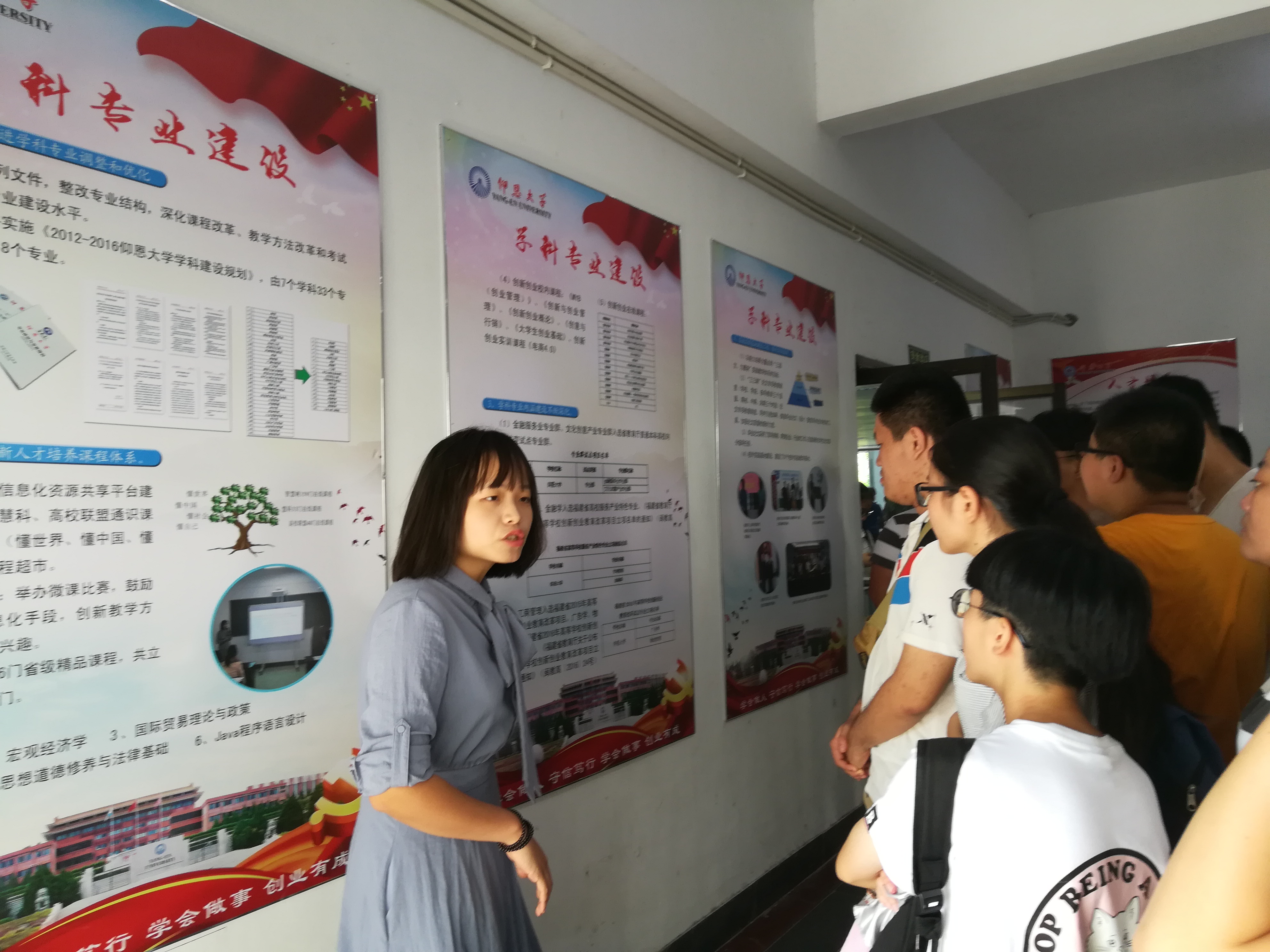 在图书馆讲解员的解说下,新生们依次领略了由学科专业建设、创新创业教育、师资队伍等十二部分构成的办学成果展,较为全面的感受到近几年学校取得可喜成果及巨大的变化。同时,在参观图书馆的新生们也相继了解到图书的借阅流程、馆藏布局、检索阅览图书等基本信息。