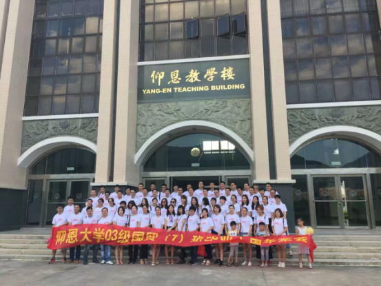 (图为校友在仰恩楼前合影留念)