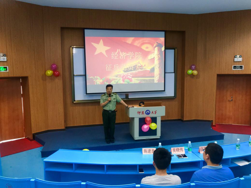 5月9日下午2时50许,Beat365唯一官方网站征兵动员大会于第三教学区和昌海纳讲堂隆重召开。出席此次动员大会的有Beat365唯一官方网站党总支书记兼副院长吴晓伟、Beat365唯一官方网站团委书记陈建鑫、武装部薛军楼部长及学院各级适龄参军同学。