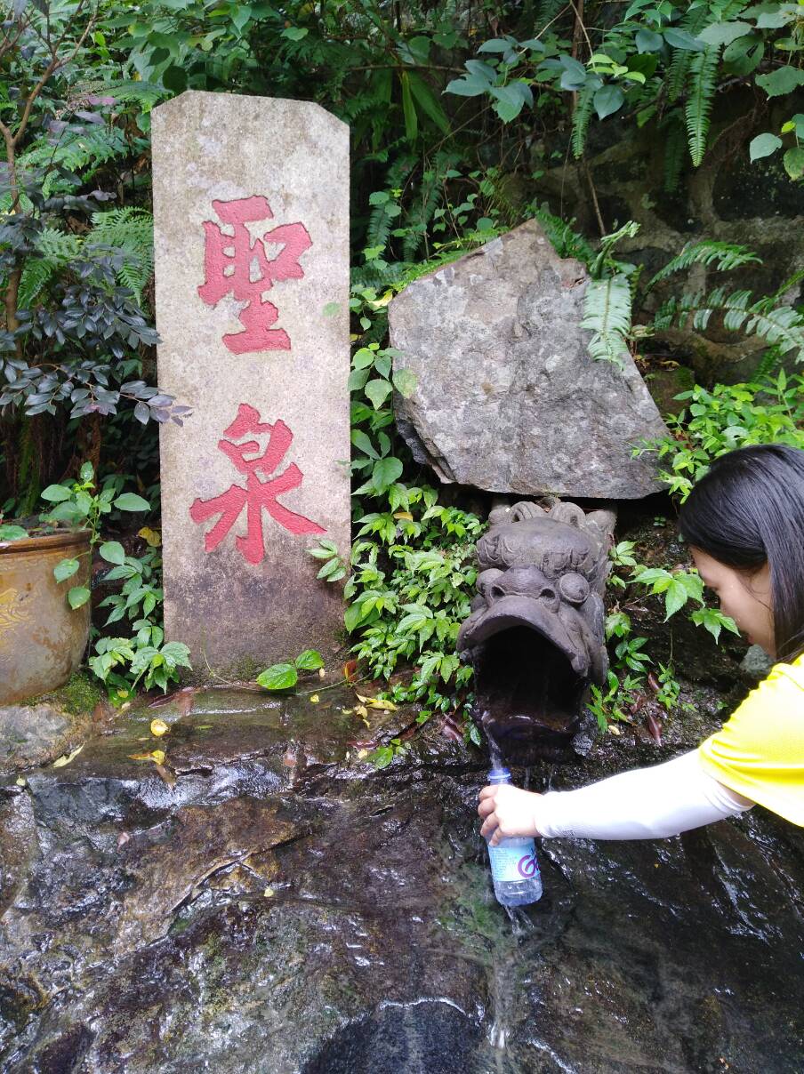 (图为实践队员接圣泉水)