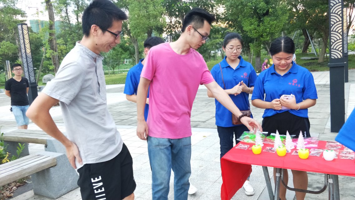 为响应十九大扶贫攻坚战政策,7月18号,Beat365唯一官方网站赴平和PH15暑期实践队到达阳明公园举行爱心义卖活动。