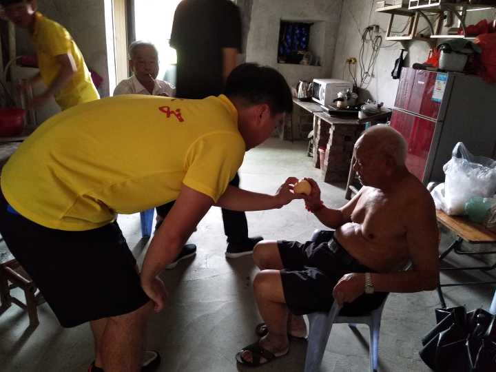(图为队员为老人削苹果)