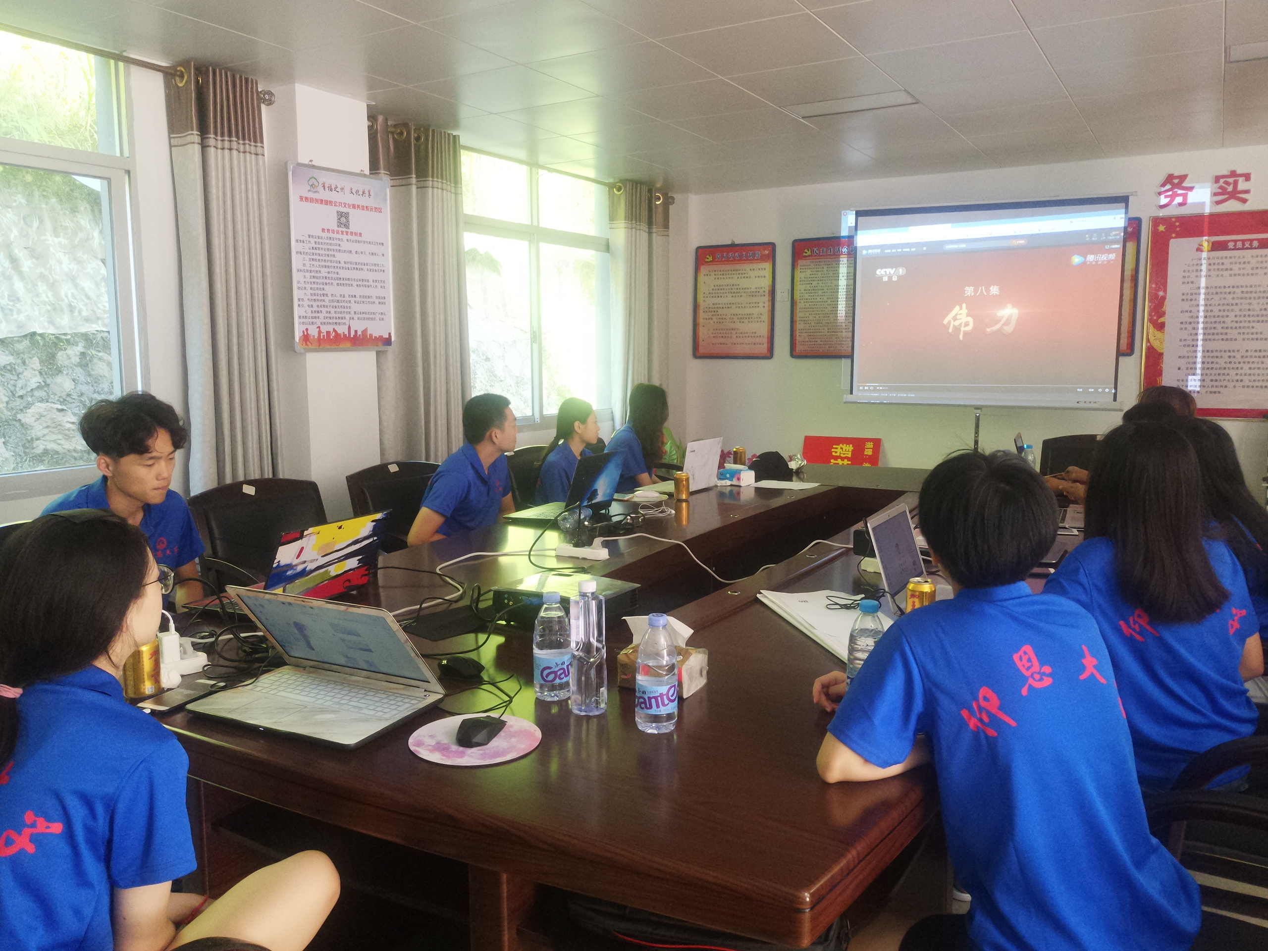 实践队队员在驻村书记郑福晨的组织下前往寨下村服务中心会议室观看纪录片《强军》片中鲜明提出党在新形势下的强军目标,带领人民军队重整行装再出发,在中国特色强军之路上迈出坚实步伐。片中生动反映习主席领航强军兴军、锻造世界一流军队的韬略实践。鼓舞实践队队员更加紧密团结在以习近平同志为核心的党中央周围,不忘初心、不懈奋斗。