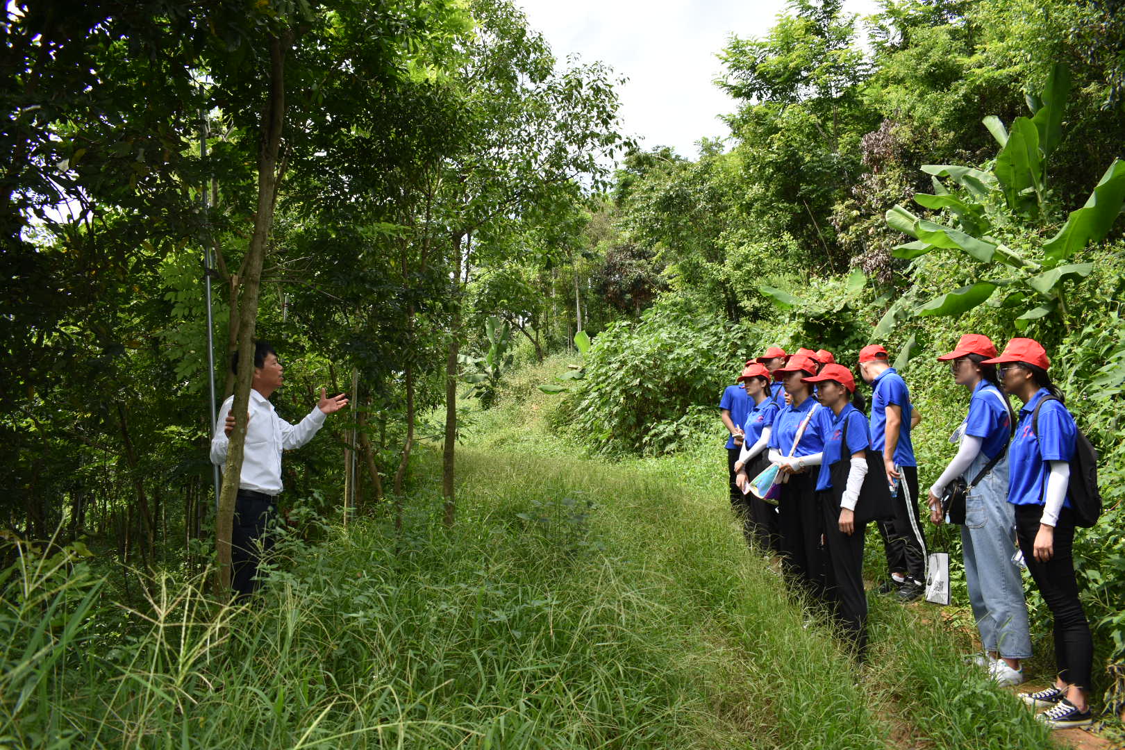 实践队对场内的珍贵树种基地进行了调研在调研中,实践队了解到基地里主要以檀香木和花梨木为主,其中檀香木在6-7年时能够进行“钻孔结香”提取香料;生长20多年的树木能够做为高端家具的原材料