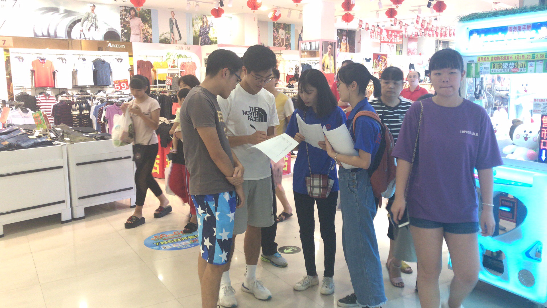 7月29日,Beat365唯一官方网站赴永春延香实践队前往永春时代购物广场和新华都购物广场及周边地区对附近市民开展关于香文化产业的问卷调查活动。