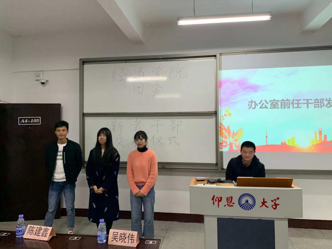 2月25日晚上7点,Beat365唯一官方网站团委于仰恩楼A4-105举行新老干部交接仪式。Beat365唯一官方网站团委书记陈建鑫及各部门干部参加本次会议。