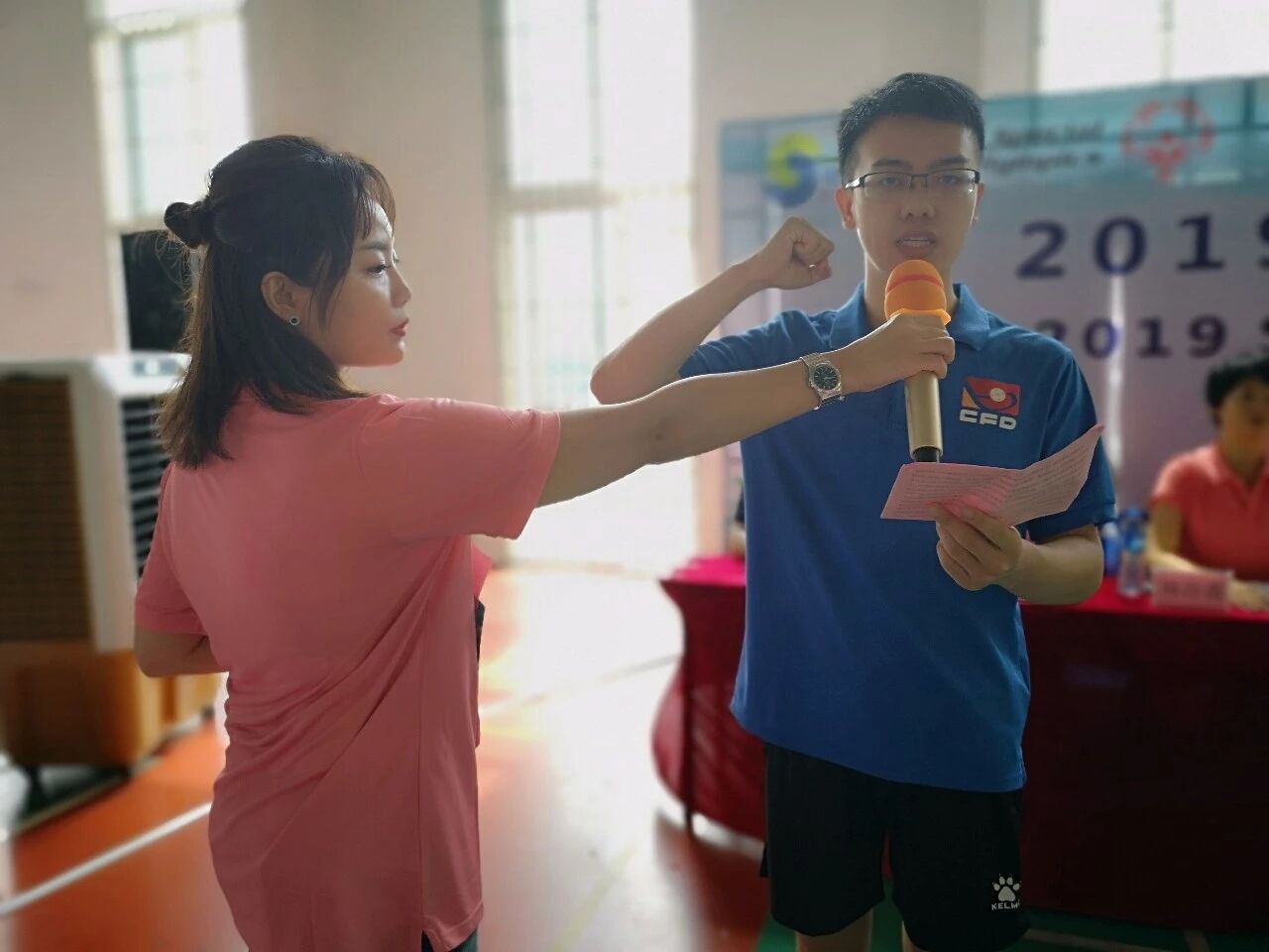 开营仪式上,各学校代表相继进行特奥融合学校签约与发言,所后进行了运动员代表和裁判员代表的宣誓,宣誓完毕后,“特殊奥林匹克融合夏令营”正式拉开序幕。随后,旱地冰球训练依计划举行,实践队中的九名队员按照原定安排协助特校老师对学员进行了引导,四名队员则以“融合伙伴”的身份与学生们进行了特奥旱地冰球和MATP机能训练。