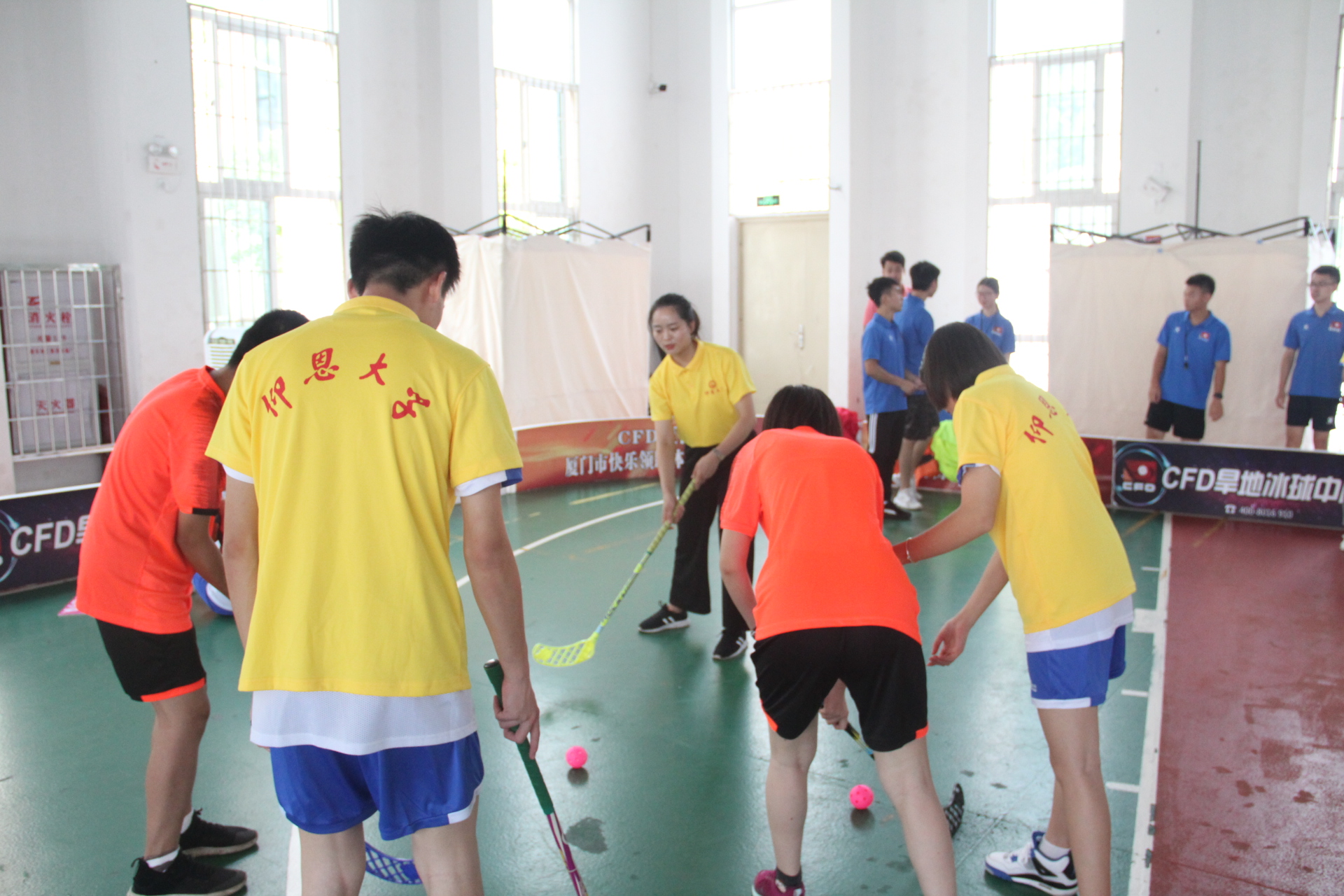 经过了两日的磨合,志愿者们更高效地引导了到场的成员,融合伙伴们则仍保持着高昂的兴致参与了训练。为了促进成员们对于比赛的了解,实践队的队员们在特校老师与教练的指导下同孩子们进行了更加系统化、团队化的旱地冰球训练。实训交流之后,融合伙伴和特殊学生们之间的配合愈发默契,关系更加紧密,了解逐渐深入。在随后举行的分队比赛中,队员们赛出了风采,亦把“友谊第一,比赛第二”的竞技精神体现得淋漓尽致。