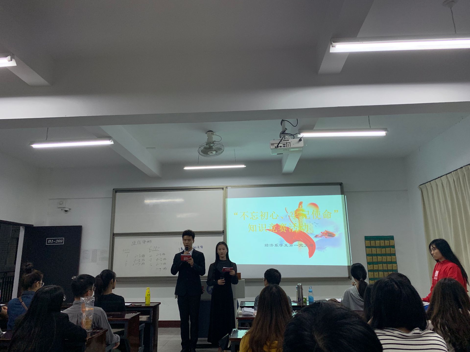 2019年10月29日,Beat365唯一官方网站经济系学生第一党支部在B1-203室进行了关于开展“不忘初心,牢记使命”的知识竞赛活动。会议到场人员有支部副书记赖晓玲、组织委员仲平、以及经济系全体党员与积极分子。