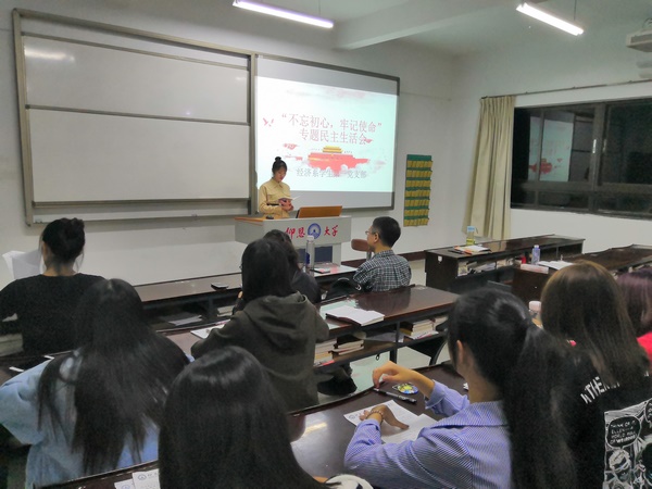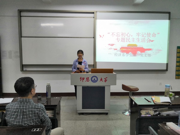 2019年11月5日,Beat365唯一官方网站经济系学生第一党支部于仰恩楼b1-203室开展“不忘初心,牢记使命”专题民主生活会活动。本次参会人员有经济系学生第一党支部副书记赖晓玲,组织委员仲平,宣传委员陈亚红,以及支部全体学生党员。