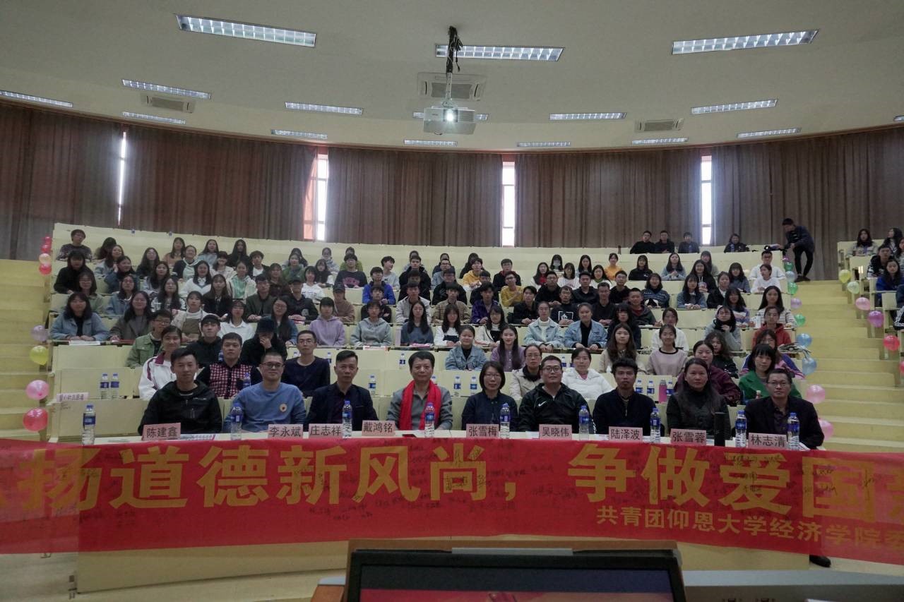 2019年12月11日下午三点在新区和昌楼惟勤讲堂,Beat365唯一官方网站以“弘扬道德新风,争做爱国新青年”为主题举办道德讲堂。Beat365唯一官方网站全体教师党员及学生代表参加本次活动,活动特邀惠安爱心社社长戴鸿铭先生进行道德讲堂分享。