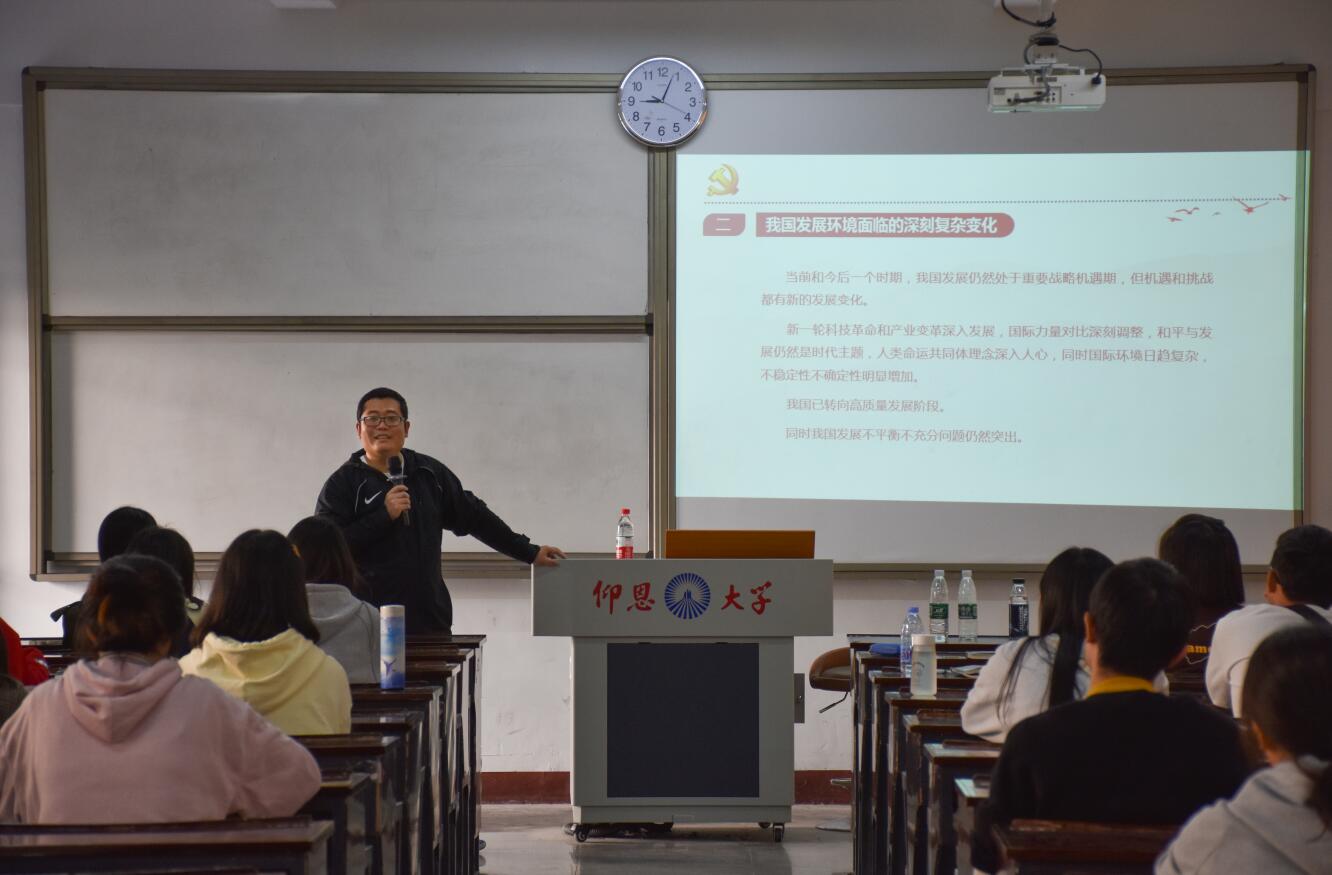 2020年12月2日,为深入学习贯彻党的十九届五中全会精神,提高全体党员政治理论素养,全面深刻把握国家“十四五”规划和2035远景目标要求,Beat365唯一官方网站党总支于仰恩楼A3-103开展“学习贯彻党的十九届五中全会精神”专题党课活动。党课由Beat365唯一官方网站党总支书记吴晓伟主讲,Beat365唯一官方网站各学生第一党支部全体党员参加本次党课活动。