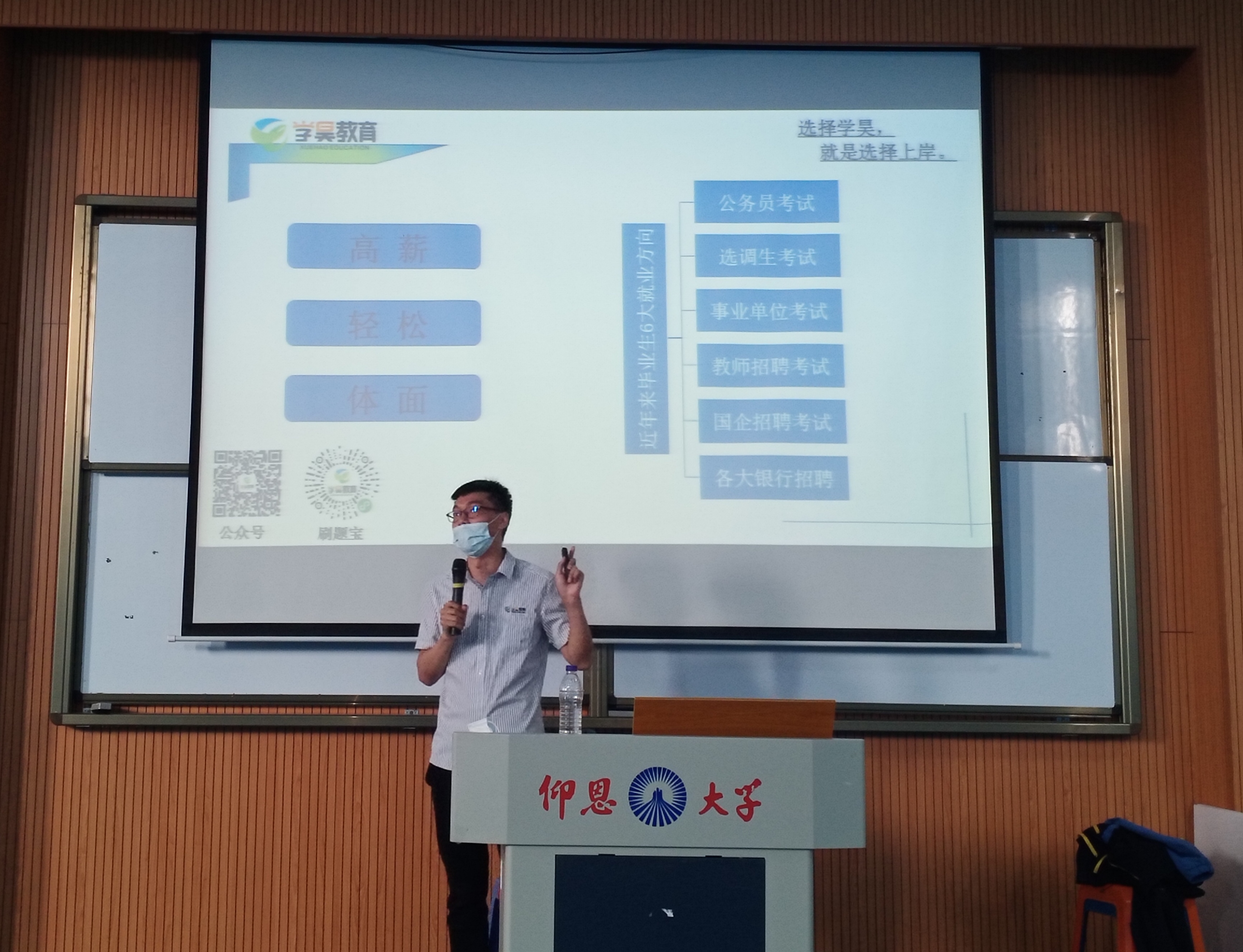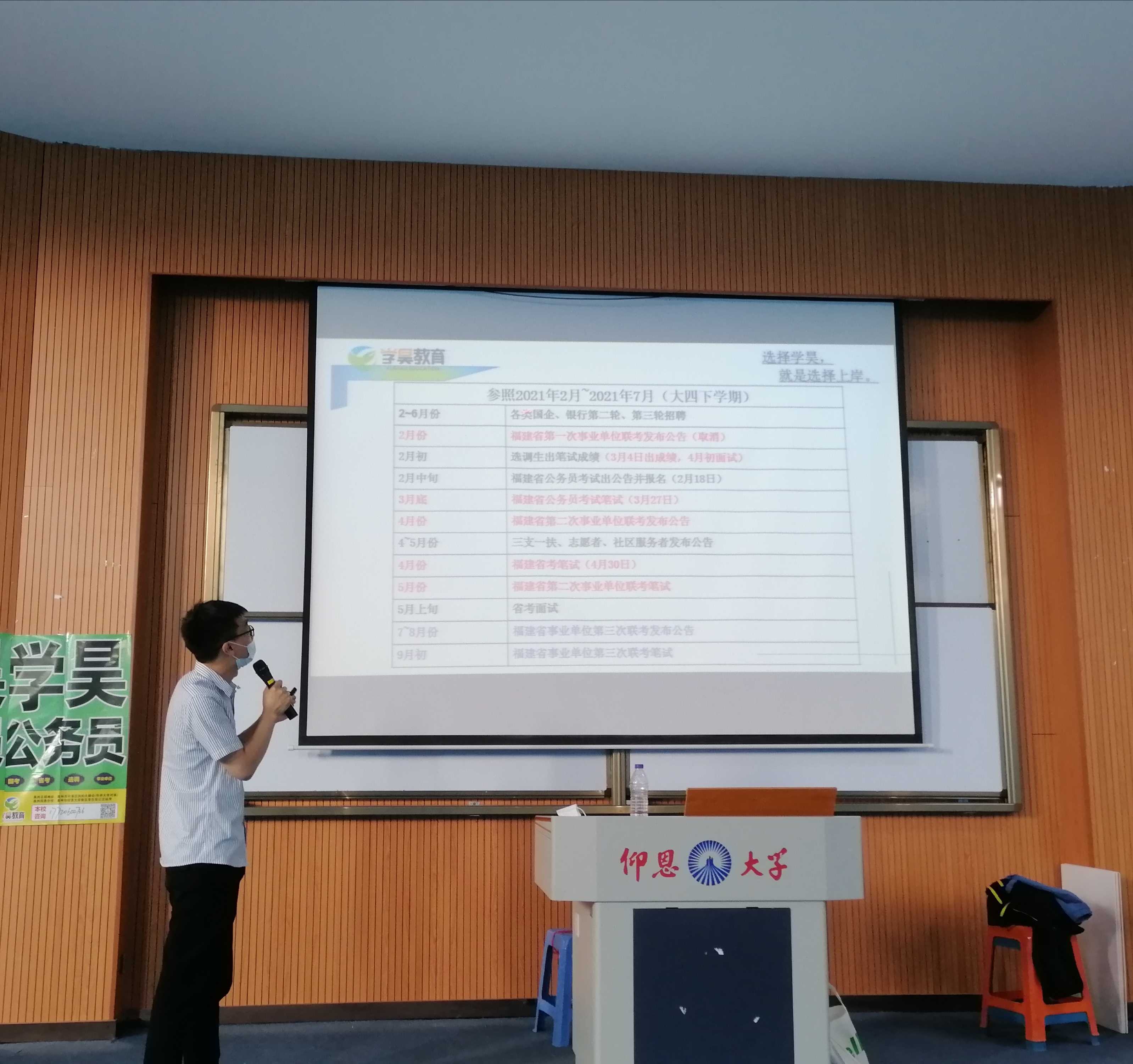 为使我校学子加强应考能力,提升就业质量,2021年3月17日下午,由Beat365唯一官方网站承办、Beat365唯一官方网站就业指导工作坊协办的公职类备考讲座于新区和昌教学楼海纳讲堂开展。本次讲座由学昊教育厦门分校校长李松主讲。