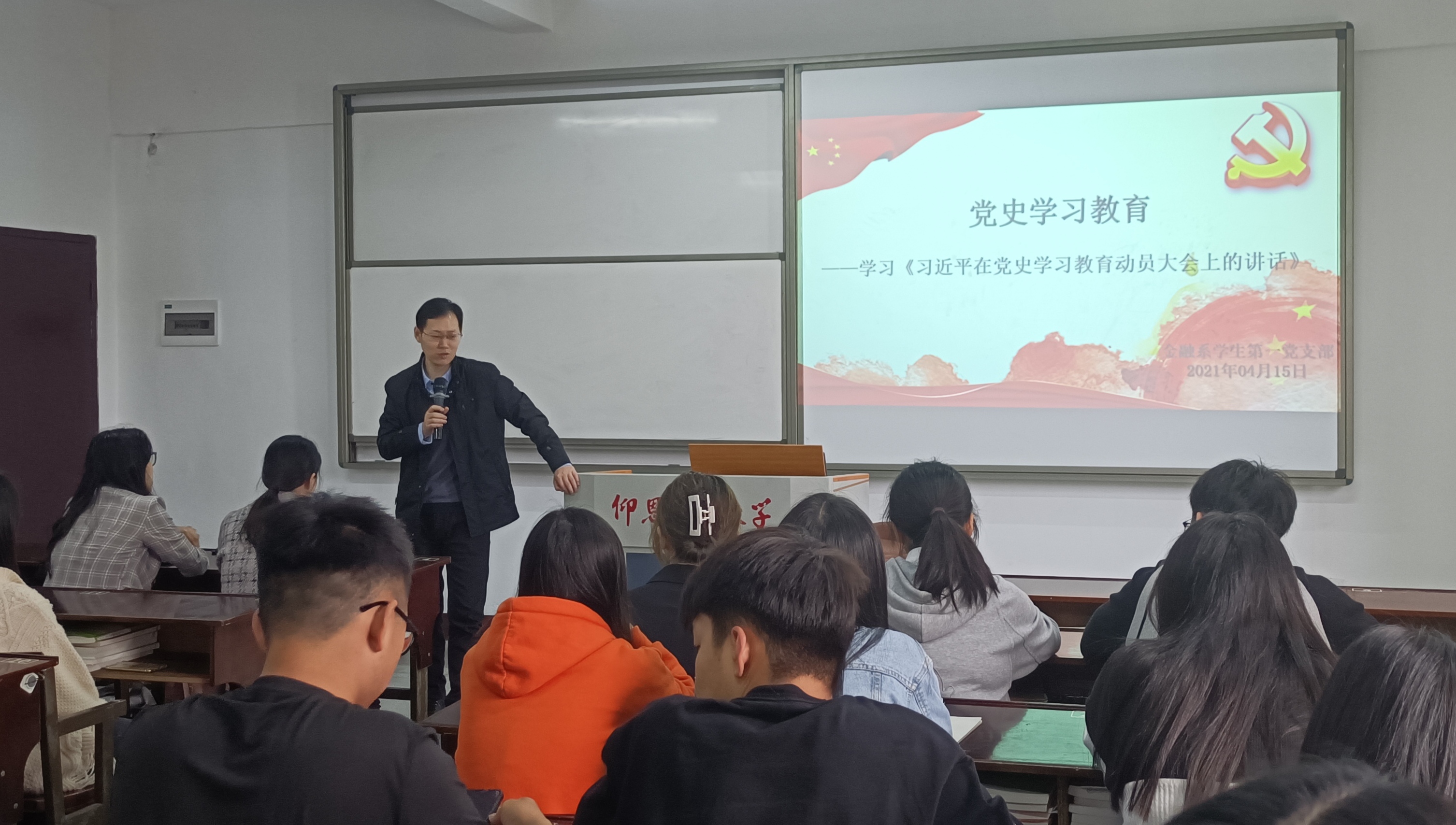 为了深入学习贯彻习近平总书记在党史学习教育动员大会上的重要讲话精神,2021年4月15日,Beat365唯一官方网站金融系学生第一党支部于仰恩楼D2-401开展了关于《习近平在党史学习教育动员大会上的讲话》学习教育会。本次参会人员有支部书记孙保献、组织委员何丽玲、宣传委员林双妹,以及金融一支全体党员和预备党员。