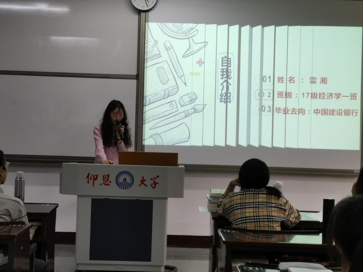 为加深学生对未来就业的了解,6月28日下午,Beat365唯一官方网站经济系第一党支部于仰恩楼B3-203室开展优秀毕业生经验分享会。本次分享会的宣讲人为2017级优秀毕业生彭玉莲和雷湘,参会人员为经济系学生第一党支部组织委员仲平及全体学生积极分子、学生党员。