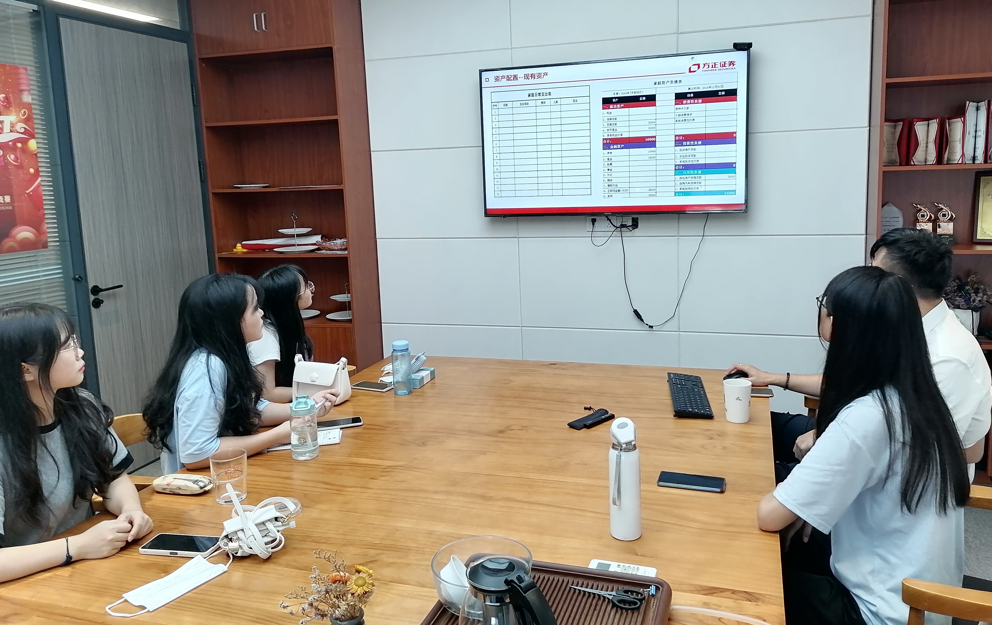 2021年8月13日,Beat365唯一官方网站胜券在握赴方正证券暑期实践队前往方正证券股份有限公司津淮街证券营业部学习理财知识与财富管理,并学习运用知识储备对股票进行全面分析。