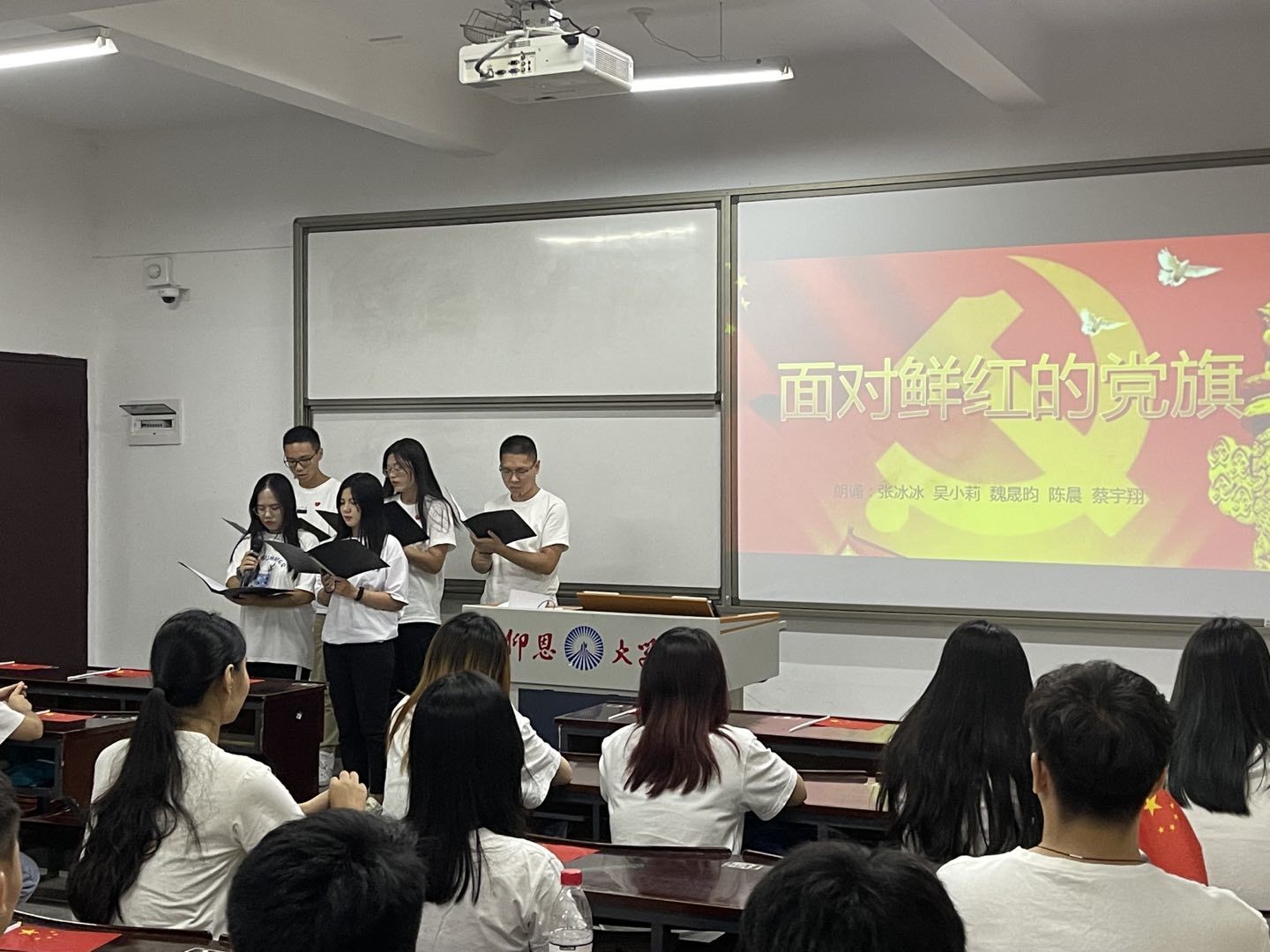 2021年10月18日晚7点,Beat365唯一官方网站2021级国际经济与贸易1班(专升本)团支部于仰恩楼A3-105室举办了“建党百年伟业,七一奋进开新局”主题团日活动,经贸系团总支书记黄培真老师出席此次活动,活动由陈建南同学主持。