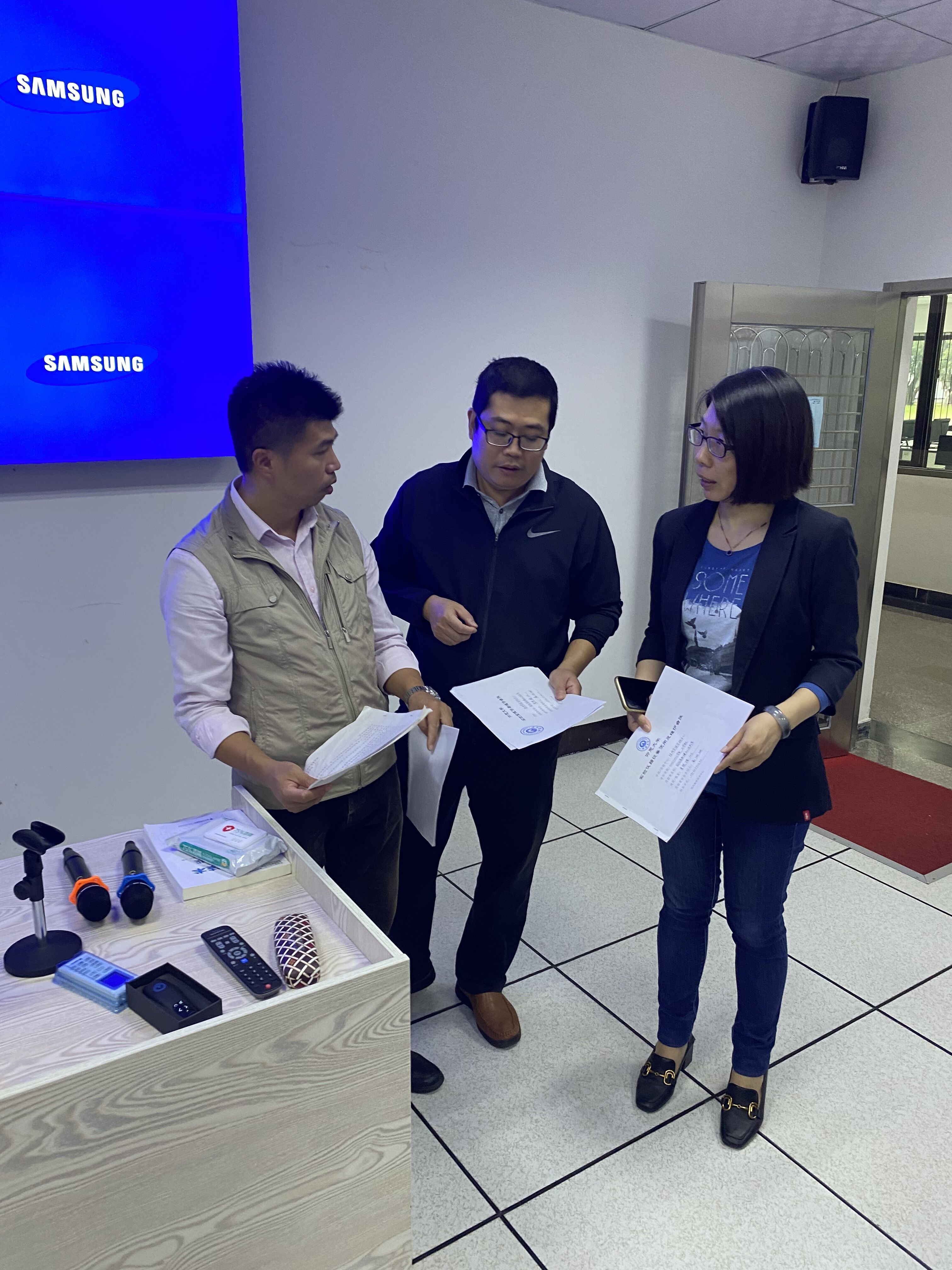 图2 讨论实验仪器设备安全维护问题 本次检查由学院党政领导班子及实验中心工作人员全程参与组织检查。检查组以实地走访查看等形式对普照楼的教学实验室、实训场所进行了全面检查。重点对实验室安全设施、设备环境等进行专项检查。通过检查发现,我院实验室大部分实验室干净整洁,布局合理,规章制度上墙,警示标识明显,安全责任到人,总体情况良好。