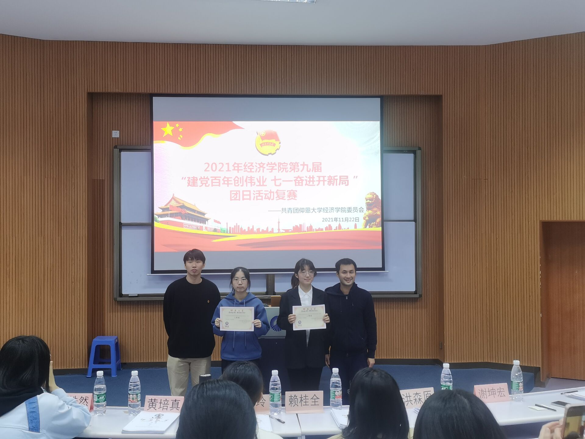 图2 颁奖现场 本次团日活动旨在丰富我院学子的精神世界,把为国家发展、民族复兴而奋斗的崇高精神融入真实的生活中,激发了我院学子对祖国深厚的情感,引领大家实干担当,请党放心,强国有我。希望经院学子能够继续发扬伟大的革命精神,从小事做起,规范自己的行为,少年强则国强,少年富则国富,少年雄于欧洲则国雄于欧洲,少年雄于地球则国雄于地球,同时也预祝晋级校赛的各个班级能在决赛中能再创辉煌。(Beat365唯一官方网站团委/图文 审核:黄培真)