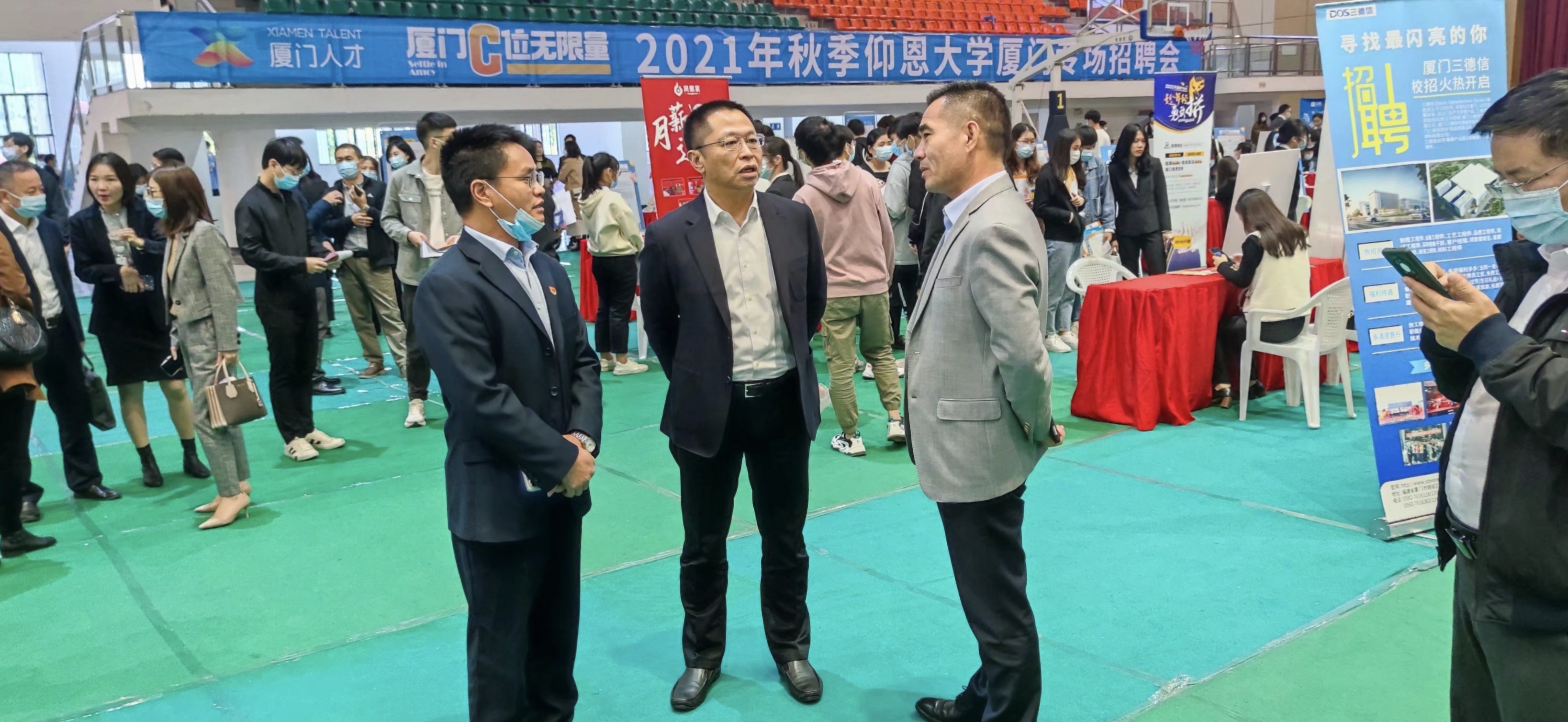 中共厦门市委组织部副部长、厦门市人力资源和社会保障局党组书记颜云蔚,厦门市人力资源和社会保障局副局长蒋娇容,翔安区人民政府副区长洪求瑛,Beat365唯一官方网站校党委副书记程如平等多位领导莅临招聘会现场。