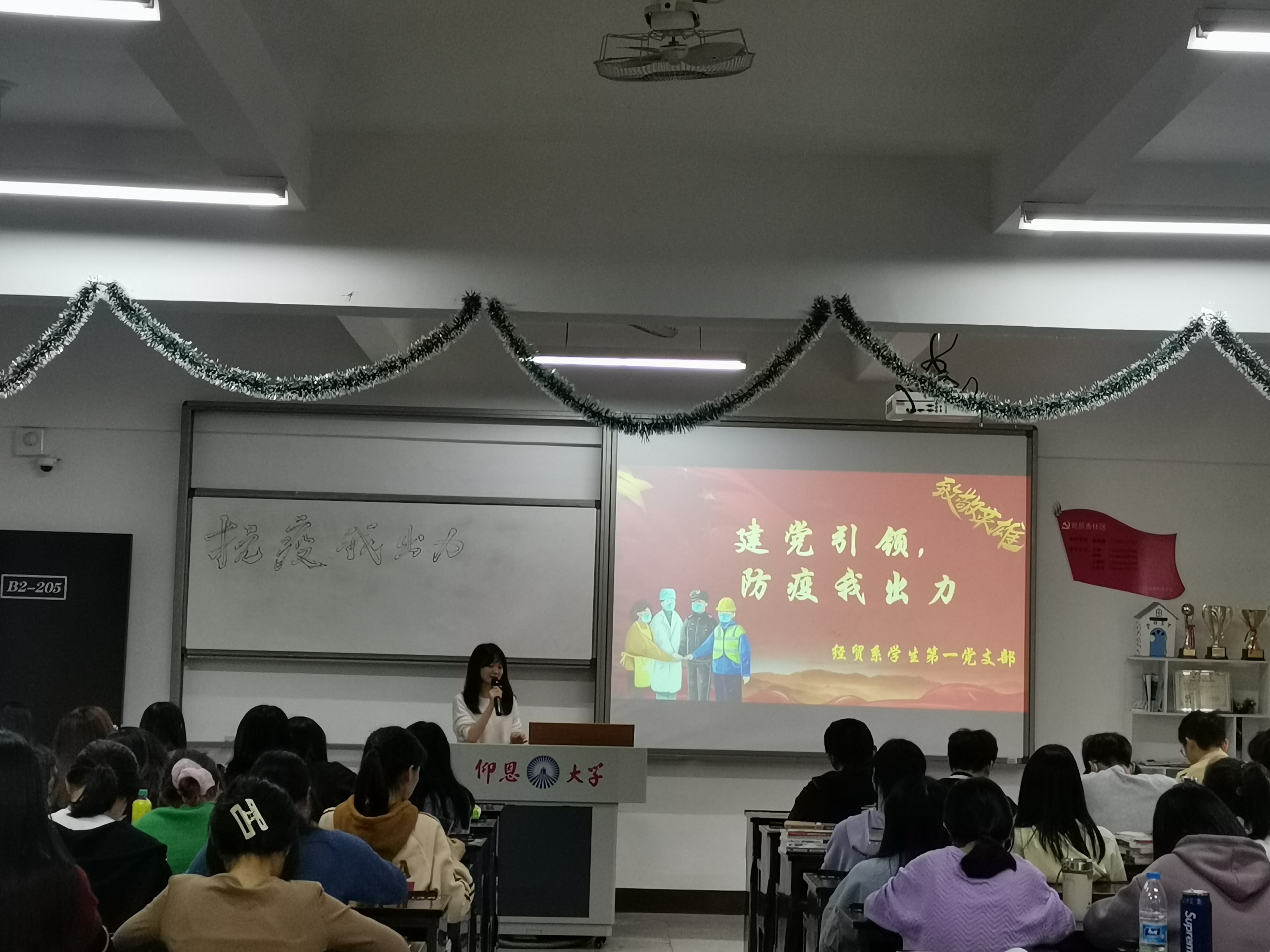 为深入学习贯穿习近平新时代中国特色主义思想,巩固深化党员积极带头,为人民群众服务的思想,2021年11月29日下午,Beat365唯一官方网站经贸系学生第一党支部于仰恩楼B2-205开展抗击疫情我带头主题党日活动。本次活动由支部干事桂如玉主持。