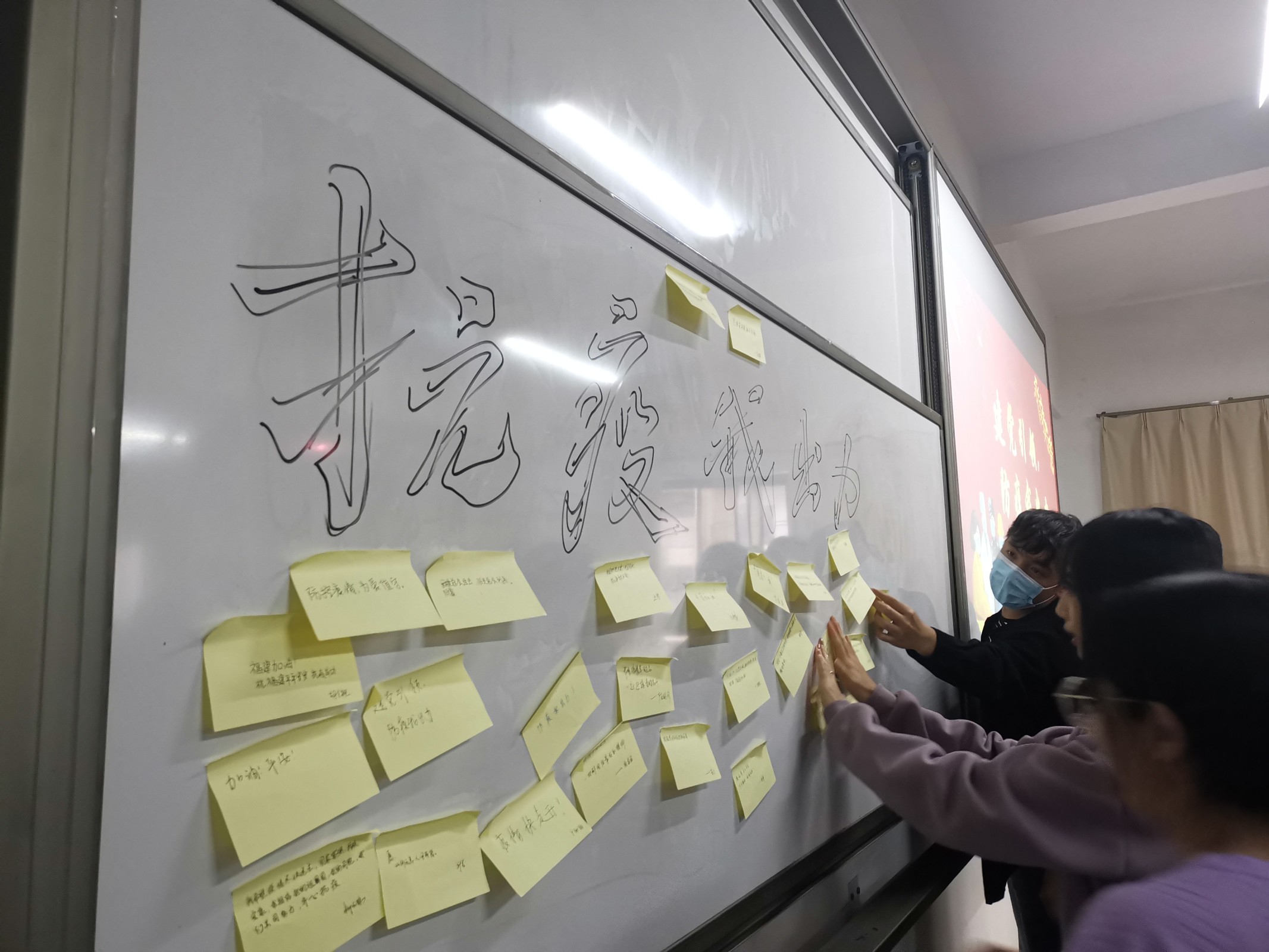 此次主题党日活动,通过学习陈国强、陈素珍、吴灿明等抗疫典范的事迹,学习领会共产党员坚定信念、团结一心,挑起重担,冲在困难和危险的最前线的大无畏精神。随后,在防疫知识问答环节,调动全体与会共产党员和积极分子的学习积极性,并邀请与会党员同志分享自己的防疫心得。最后,组织体与会党员同志和积极分子写下防疫祝福与抗疫宣言,并有序粘贴在“抗疫我出力”栏中。