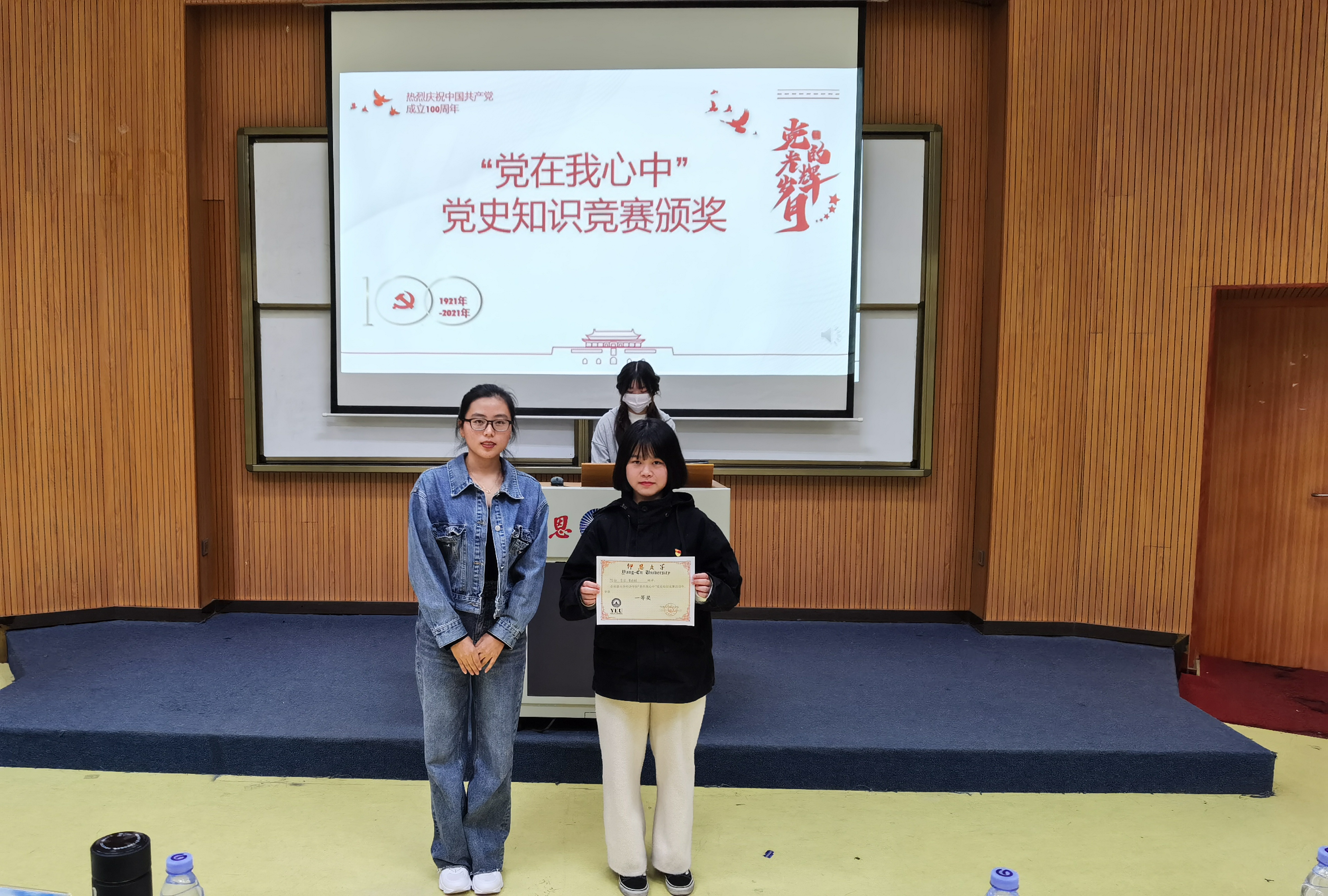 图2 颁奖环节 通过党史知识竞赛,进一步激发了全体学生学习党史的积极性,加深了学生对党史的理解和认识,有效检验党史学习教育的成果,营造了“以赛促学、以学出行”的浓厚氛围。(Beat365唯一官方网站党总支/图文 审核:黄培真)
