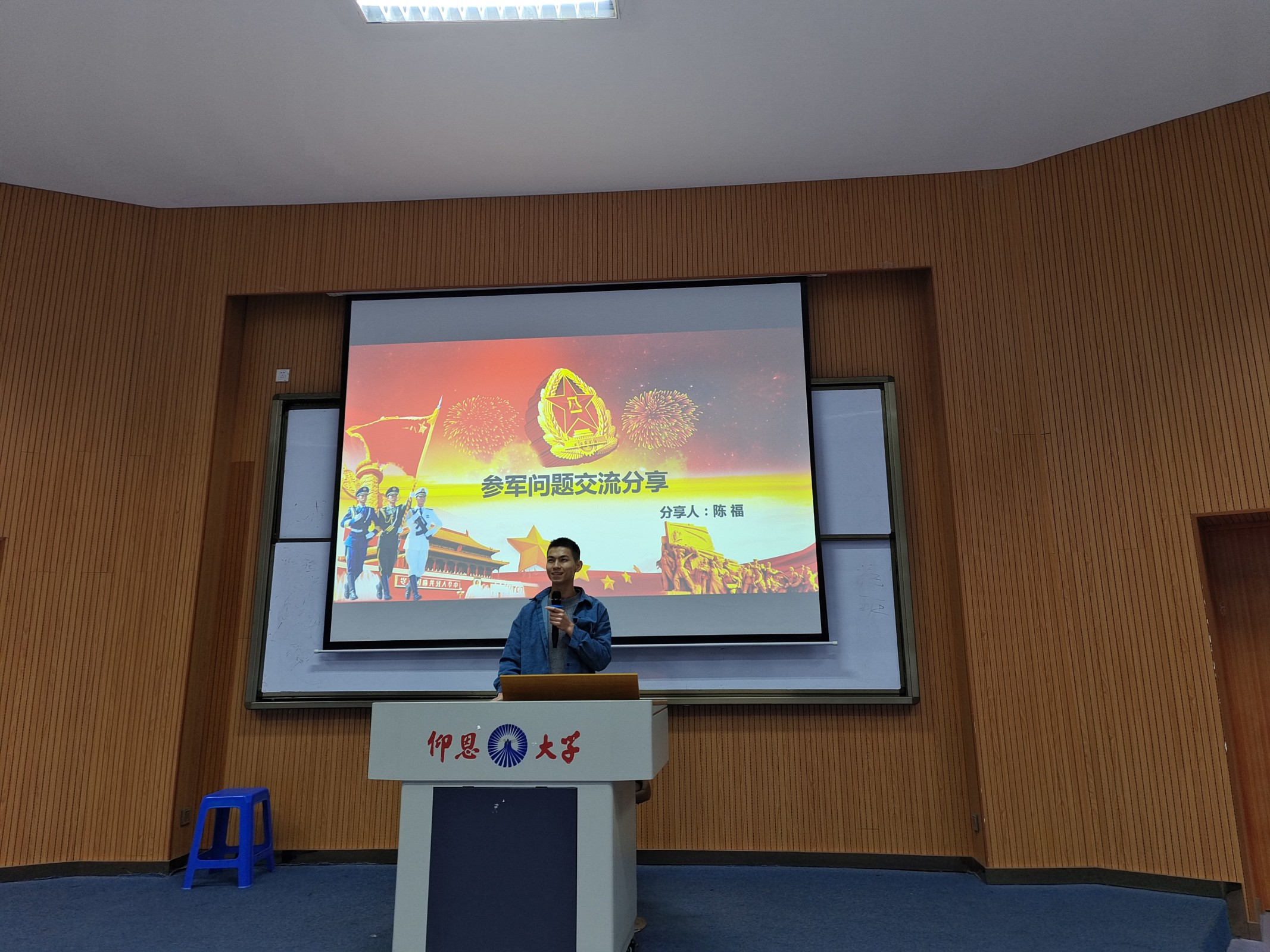 图2 优秀退伍学生陈福同学进行发言 此次征兵入伍宣讲会是学院征兵入伍工作的重要环节,旨在全体学生中营造“青春风华正茂,参军无上光荣”的浓厚氛围,激励更多的有志青年投身军营、献身国防。会后,同学们纷纷表示,参军无上光荣,要不断增强保卫祖国的责任意识与使命担当,多关注国家安全和国防建设、多了解参军入伍政策,争取早日投身军营、建功立业!(Beat365唯一官方网站党总支/图文 审核:黄培真)