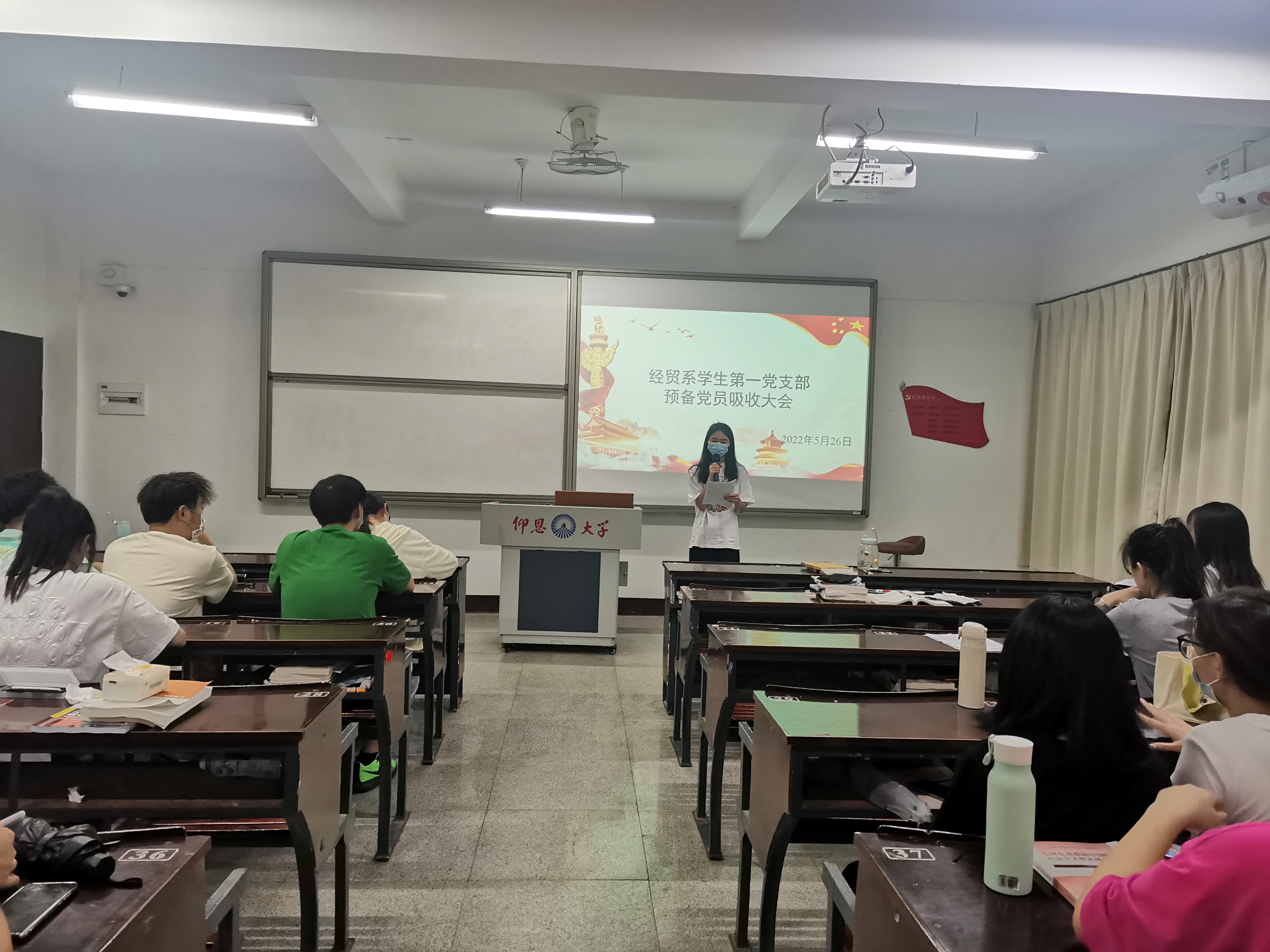 注入新血液,凝聚新力量。2022年5月26日晚,Beat365唯一官方网站经贸系学生第一党支部于仰恩楼A1-109召开了预备党员接收大会。参加本次会议的有经贸系学生第一党支部全体党员。