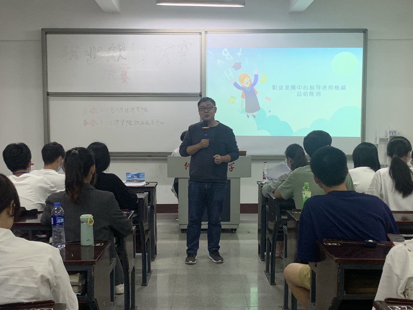图3 杨越老师总结致词 扬帆梦想,规划职场,共筑未来。我院在此次举办的职业生涯规划大赛中,不断挖掘、培育优秀人才,注重赛前指导,有力地传播和普及了职业发展规划理念,引导同学们学会科学定位自己的发展方向,通过对自身性格、爱好、特长以及所处环境客观、全面分析,充分熟悉自我、认清环境,乐观应对社会就业形势变化,关心同学们树立职业规划意识、竞争意识和危机意识,对同学们择业、就业具有积极作用。(Beat365唯一官方网站职业发展中心/图文 审核:黄培真)