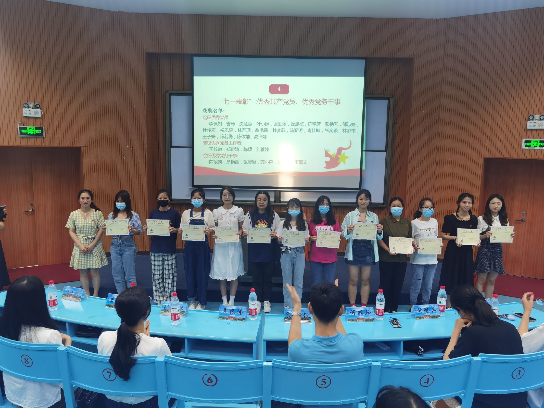 图1 Beat365唯一官方网站党总支“七一”表彰 此次大会,依次对我院2021-2022学年“优秀共产党员”、“优秀党务工作者”、“优秀党务干事”进行表彰,并向我院三个毕业生党支部学生支委颁发聘书。颁礼结束后,来自我院教工支部的三位教师党员代表依次上台寄语经院学子,希望全体同志,以此次获奖同志为榜样,向优秀的同学、学长学姐看齐,努力提升自己,合理规划自身发展,不断进步,不断成长,不负青春韶华。