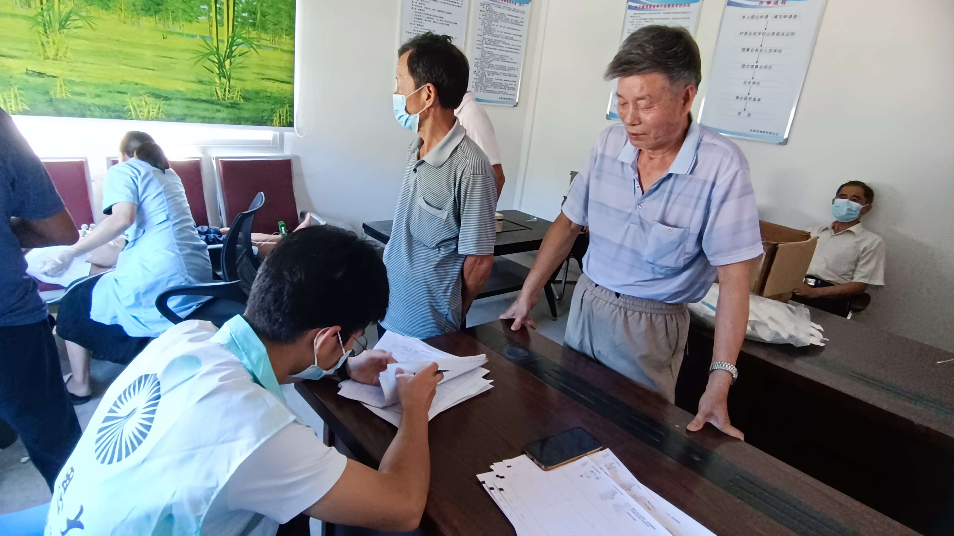 (图为实践队员为大樟村老人登记图)