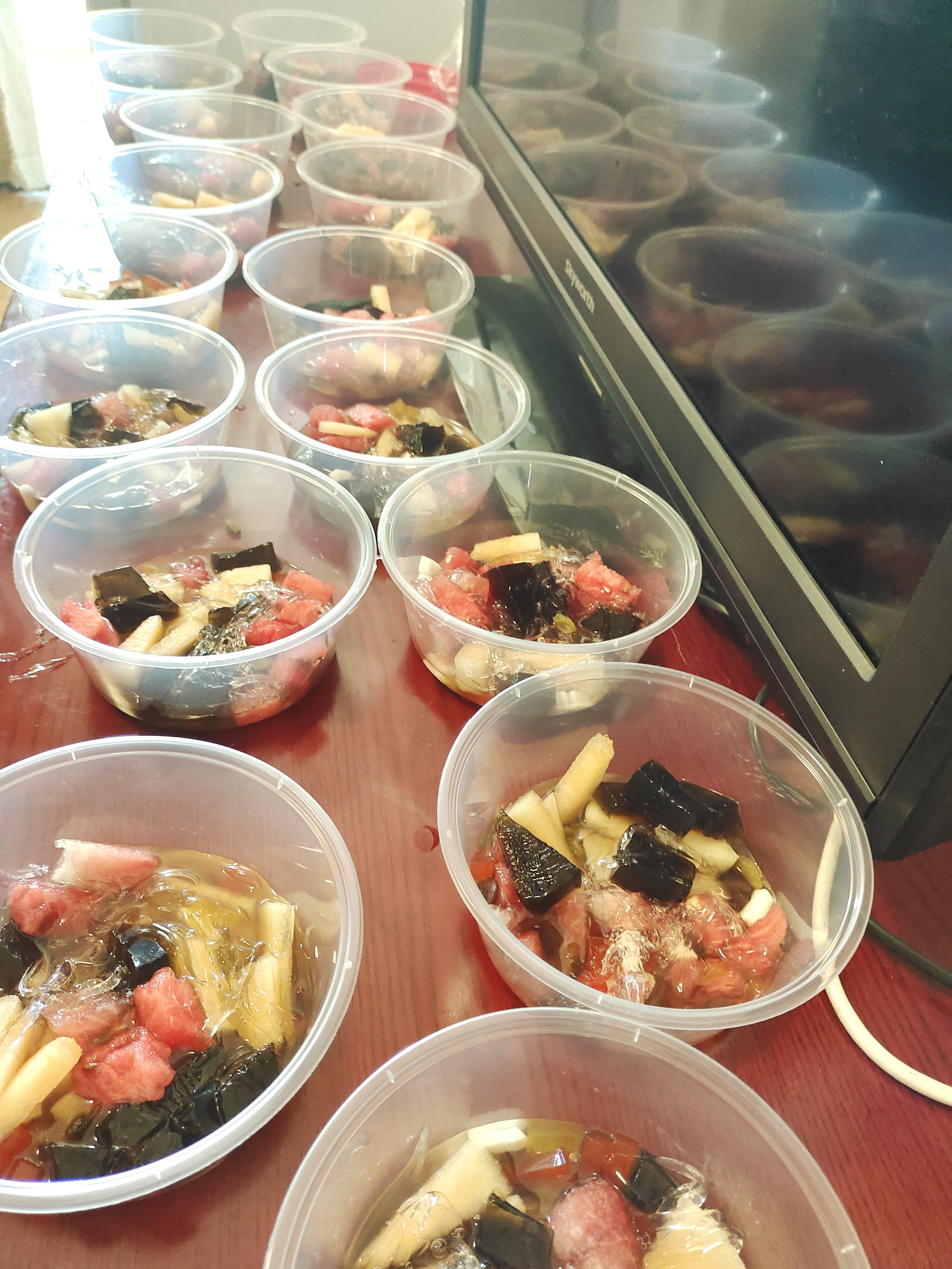 (图为实践队队员制作四果汤图) 结束上午的爱心商家助理活动后,实践队员便马不停蹄的精心制作四果汤,准备爱心义卖。实践队员一部分计算成本估算份数,一部分准备芋圆,还有的队员冒着中午的酷热在阳台切西瓜和煮绿豆,好一副热火朝天的景象。“哥们哥们来碗四果汤吗?在这炎炎夏日来一份清凉爽口,香甜解暑嘎嘎好吃嘎嘎冰爽的四果汤简直是再美妙不过的意一件人生幸事了”“爱心活动,爱心义卖活动,要喝四果汤吗?在熙熙攘攘的夜市中,队员们的吆喝声吸引大量市民停下脚步,驻足观看和了解爱心活动。”小伙子,来一份四果汤“”好嘞,这就给您打包“一天的疲惫非但没有影响队员们卖四果汤的激情,反而历经困难而斗志更坚,热情高涨。