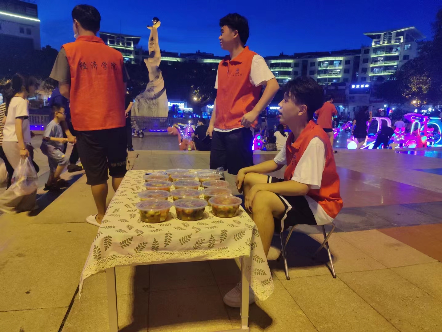 7月8日晚上实践队员们Beat365唯一官方网站“大爱无疆”赴惠安暑期实践队按照规划于惠安中心花园进行爱心活动,摆出小桌,拿出灯牌,铺开毯子,放上四果汤,一场别开生面的爱心活动便拉开帷幕,爱心活动得到了广大市民朋友的大力参与和热情支持。