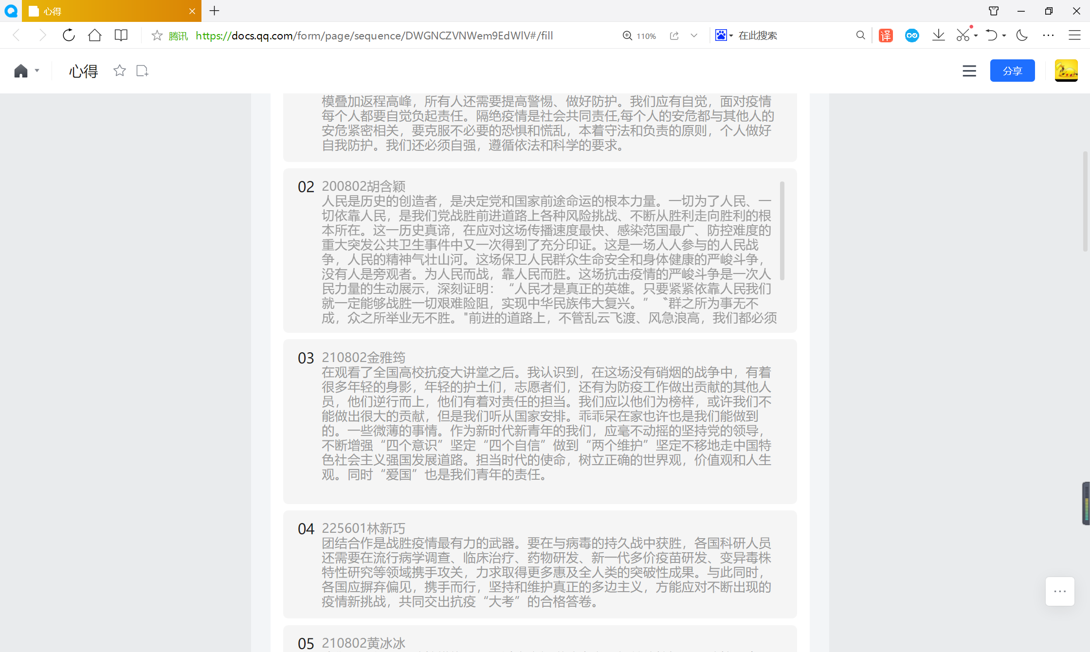 课后,我院教工支部各位同志也都纷纷发言讨论,都表明要以更严格的标准要求自己。做好科学防疫工作,不给党不给国家添麻烦。党员干部要做好疫情防控的宣传,让更多人对“打疫苗”有科学的认识,自觉打“第一针、第二针、第三针”,构筑起健康免疫系统。疫情防控,人人有责,精准高效做好疫情防控工作,离不开全体成员的共同参与,每个人都应当本着为社会、为自己、为家庭负责的态度,积极落实好各项防控措施,当好自身疫情防控“第一责任人”,通过每个人的努力,凝聚成群防群控的强大力量。(Beat365唯一官方网站党总支 黄培真/图文)