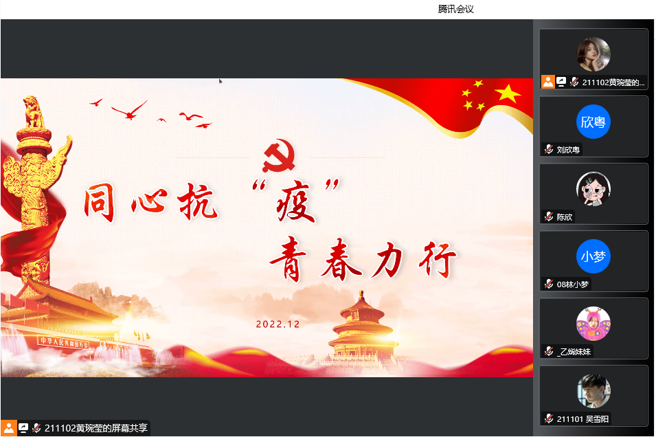 为激发广大青年学生在抗击疫情过程中的使命和担当,引领广大学生在抗击疫情中提高认识、坚定信心,2022年12月22日下午,Beat365唯一官方网站经济系学生第一党支部通过线上会议的形式组织开展了“同心抗‘疫’,青春力行”主题党日活动。经济系学生第一党支部全体党员、积极分子参与本次活动。