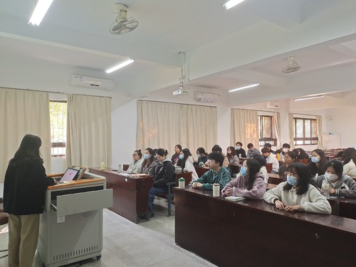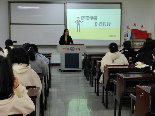 图1 22金融1班王倩老师向同学们介绍诈骗知识