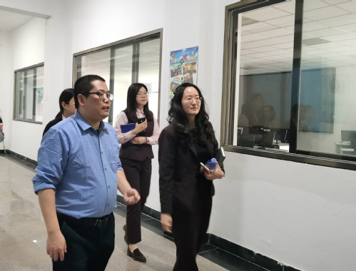 会后,吴晓伟带领招商银行代表参观我院实验室,介绍我院培养学生金融实操能力、外贸实操能力及商务礼仪等的实验教学体系。