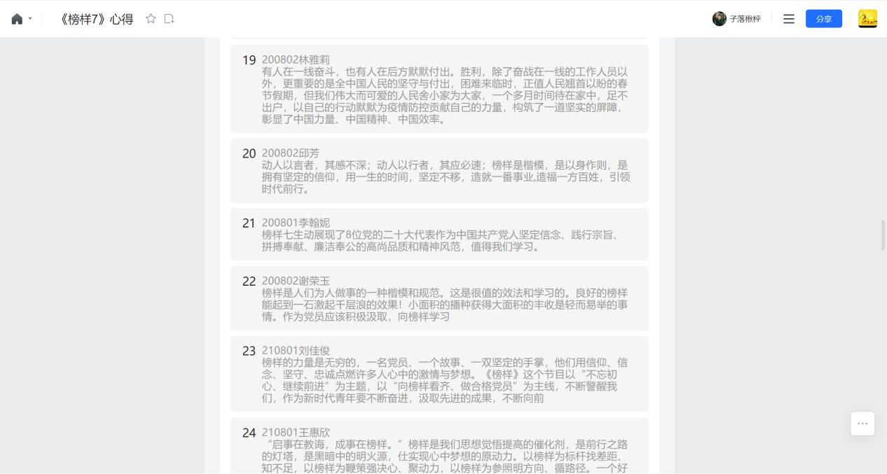 金融系学生第二党支部书记陈依婧表示,通过《榜样7》更加深入领悟了在不同领域的党员是如何发挥自己的力量,他们都是我们九千多万党员的时代榜样,希望我们无论在校园还是毕业走出社会都能学榜样做榜样,用实际行动去发挥我们的党员模范作用,用强烈的使命感和责任感勇当重任。
