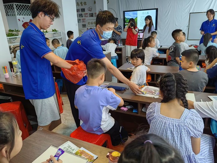 实践队提前抵达立塘社区,与立塘社区服务志愿者讨论活动开展的流程和内容。随后,志愿者带领实践队员前往永泰县团委暑托班,共同开展爱国党史教育活动,给小朋友们讲述中国共产党的发展历史和背景故事,展示革命先辈的英雄事迹,传播爱国主义思想。