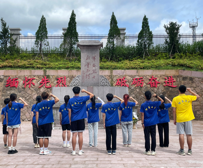 实践队抵达了烈士纪念碑,队员们来到纪念碑前,集体默哀3分钟以表对先烈的尊敬,并在纪念碑前宣誓要将先辈们的精神延续下去。