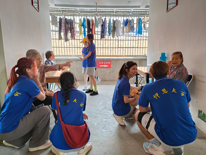活动现场,实践队队员们分工明确,有的实践队队员与老人们促膝围坐,面对面地亲切交谈,认真倾听老人们在敬老院中的生活状况,有的队员给老人打扫房间,有的队员帮助老人解决生活中如手机不会使用等困难。大家用朴实而真诚的行动表达着对老人们的关爱。