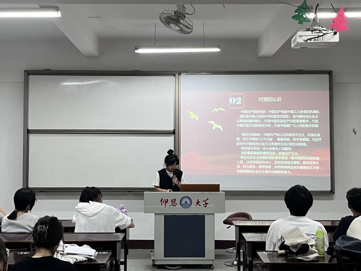 首先,李荣美同志对本次会议的议程作简要介绍。随后,10名推优对象依次上台进行汇报其自身个人情况、入党决心并表明态度,就支部支委所提出的问题进行答辩,由支委同志考察其入党动机。最后,支委同志就推优对象谈话内容进行讨论。