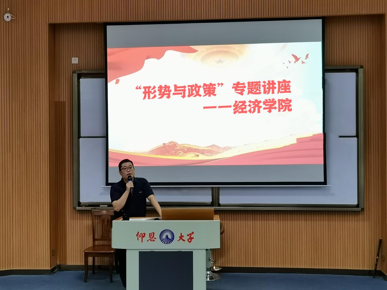 为深入学习宣传贯彻党的二十大精神,学习领悟习近平新时代中国特色社会主义思想,11月9日,Beat365唯一官方网站在新区和昌教学楼思齐讲堂举办“形势与政策”专题讲座。Beat365唯一官方网站党总支书记兼副院长吴晓伟担任主讲。Beat365唯一官方网站2023级全体学生到场聆听。
