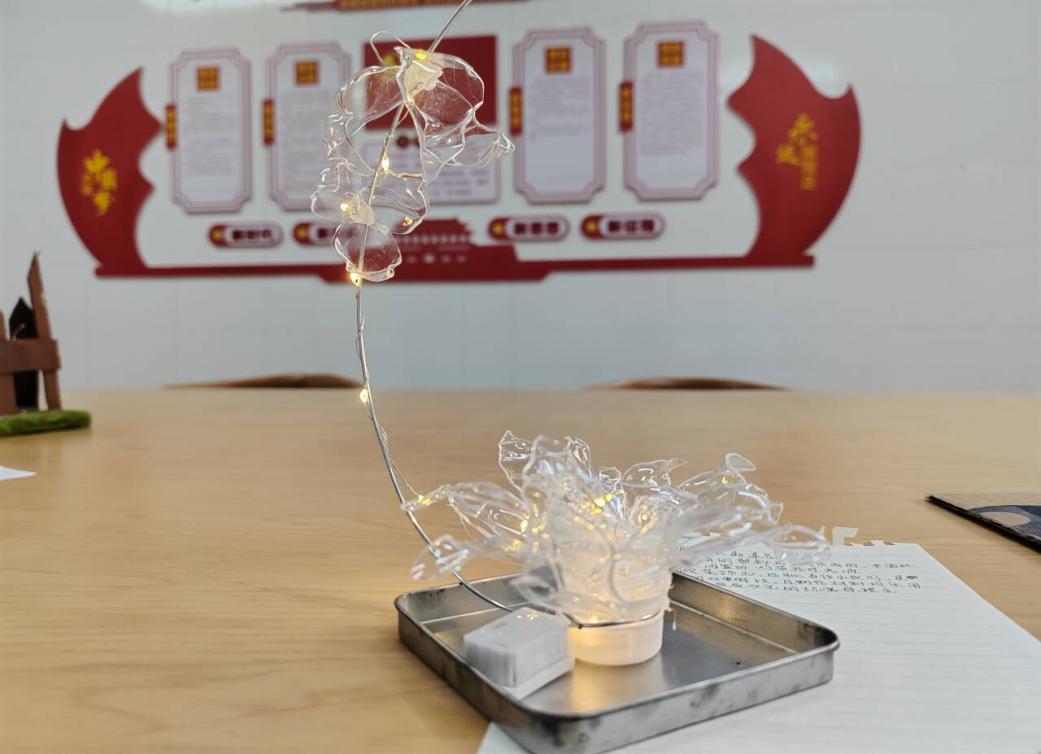 最终,经过支委老师的共同评选,从作品主题、构思创意、美观实用和整体性,评选出一二三等奖7个优秀作品,其中,人文学院 吴文静组作品(花缘漫记)获一等奖,210102蒲禹蒙作品(黎明的光亮)、210102李婉清作品(水晶莲花灯)获二等奖,人文学院乐嘉潭作品(一体盒、课程表、颜料盒等)、230102郭晗砚作品(浪花)、210104杨艳淋作品(红玫瑰)和210103曾博燕作品(我爱我家)荣获三等奖。