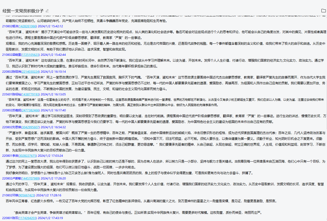 为确保此次思政课的学习效果,Beat365唯一官方网站党总支结合各支部实际,通过支部、班级集中收看及个人自主收看相结合的方式,共同学习“百年天演,鉴知未来——福建省大中小学同上一堂思政课”,并展开积极交流讨论。此次学习活动参与人数达1166人次。