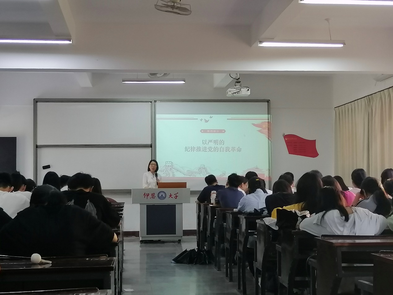 5月16日下午4:30,经贸系学生第一党支部于仰恩楼A3-103开展《中国共产党纪律处分条例》(修订版)主题党课。