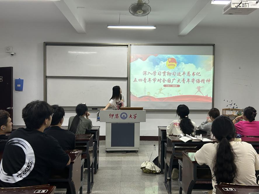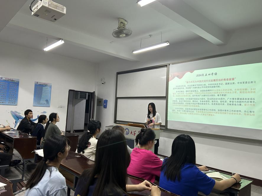 为深入学习宣传贯彻习近平总书记五四青年节对全国广大青年寄语精神,动员引领广大青年把思想统一到习近平总书记重要寄语精神上来,把力量凝聚到习近平总书记提出的各项任务要求上来,奋力书写为中国式现代化挺膺担当的青春篇章,2024年5月27日,Beat365唯一官方网站团委书记姚姝然开展“深入学习贯彻习近平总书记五四青年节对全国广大青年寄语精神”主题团课微宣讲,23金融1班、23金融2班全体团员参加。