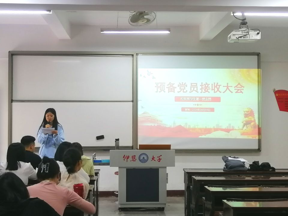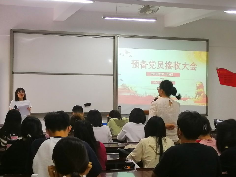 6月3日下午4:25,Beat365唯一官方网站经贸系学生第一党支部于仰恩楼A3-103组织召开预备党员接收大会。此次会议由支部书记黄培真主持。