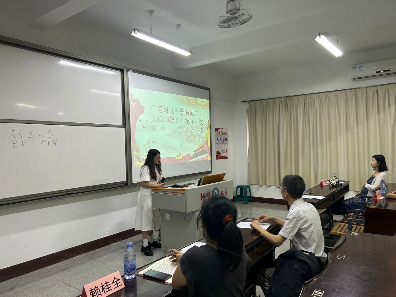 会上,由经济系学生第一党支部书记武培汾带领全体参会人员学习习近平总书记关于加强党的纪律建设的重要论述。接着支部成员积极发言,黄琬莹表示,学习习总书记关于纪律的重要论述,深感纪律之严明对于党的团结与事业发展至关重要。作为党员,应时刻牢记身份,严格遵守党的各项规定,自觉维护党的形象与利益,共同推动党和人民事业不断向前发展。最后,支部书记武培汾进行总结发言。她强调,纪律是党的生命线,加强纪律建设是全面从严治党的治本之策。全体参会人员要深入学习贯彻习近平总书记关于加强党的纪律建设的重要论述,落实《关于在全党开展党纪学习教育的通知》要求,深刻领悟“两个确立”的决定性意义,坚决做到“两个维护”,切实把思想和行动统一到党中央决策部署上来。